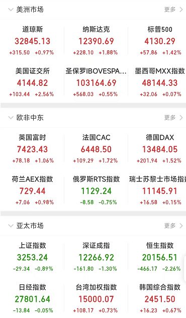 周五,美股三大指數(shù)集體收漲,道指漲0.97%,本月累計(jì)上漲6.73%;標(biāo)普500指數(shù)漲1.42%,本月累計(jì)上漲9.11%,納指漲1.88%,本月累計(jì)上漲12.35%,且納斯達(dá)克100指數(shù)7月份上漲13%,創(chuàng)2020年4月以來最佳單月表現(xiàn)。