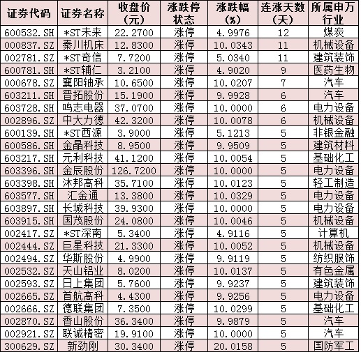 表:今日14只漲停的汽車股表現(xiàn)情況: