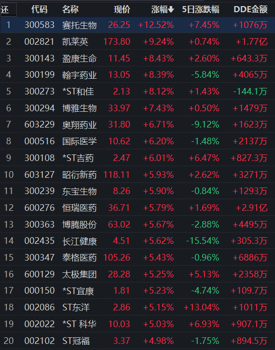 8月4日,申萬一級行業(yè)中醫(yī)藥生物領(lǐng)漲,漲幅達2.05%。行業(yè)351只交易中的個股,有324只上漲,其中,有4只個股漲停,19只個股漲幅超5%。