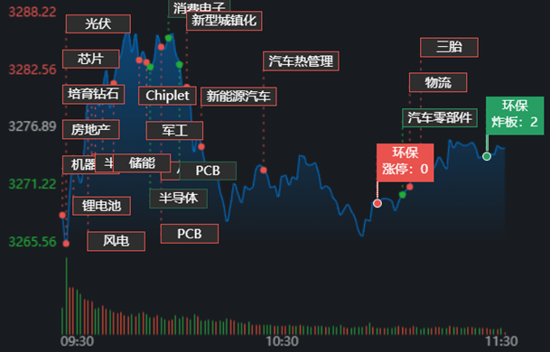 8月15日早盤,A股三大指數(shù)開盤后均一度沖高,隨后震蕩回落并出現(xiàn)分化,呈深強滬弱格局。截至上午11:30,上證指數(shù)跌0.06%,報3274.87點;深證成指和創(chuàng)業(yè)板指漲幅分別為0.33%和1.09%;滬深兩市合計成交額6249.6億元;總體來看,A股市場個股漲少跌多。