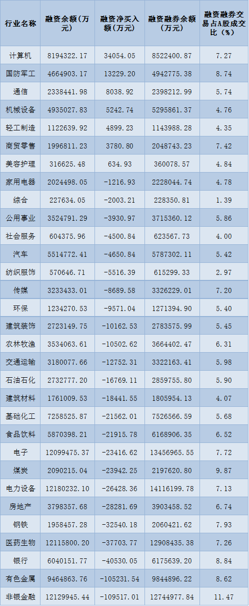 表:8月12日申萬一級行業(yè)兩融交易情況: