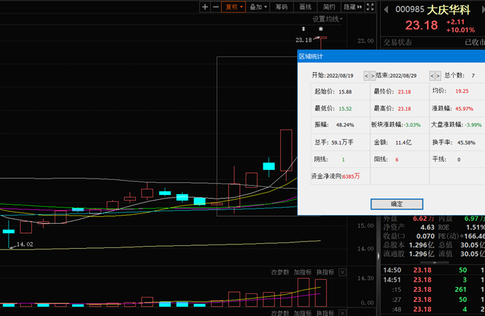 8月29日,大慶華科漲10.01%,報(bào)23.18元。該股自8月19日以來,截至8月29日已連續(xù)7個(gè)交易日上漲,累計(jì)漲幅達(dá)45.97%。該股最新A股總市值達(dá)30.05億元,A股流通市值30.05億元。