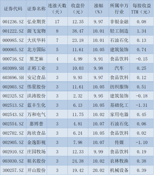 表:連續(xù)上漲5天且今日收盤漲停股一覽