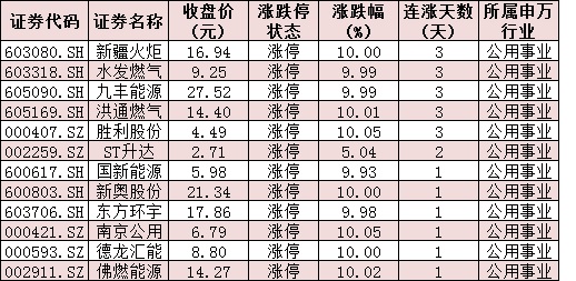 表:今日公用事業(yè)行業(yè)12只漲停股情況: