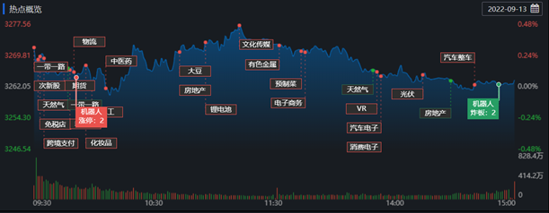 9月13日,A股三大指數(shù)全天以震蕩為主,早盤一帶一路板塊出現(xiàn)9只個股漲停,激活了部分人氣,但持續(xù)性不足,板塊出現(xiàn)輪動。截至收盤,上證指數(shù)漲0.05%,深證成指漲0.38%,創(chuàng)業(yè)板指0.09%,滬深兩市合計成交額7713.5億元;北向資金凈買入39.71億元;總體來看,A股個股漲多跌少,上漲個股為2526只,下跌個股2096只。