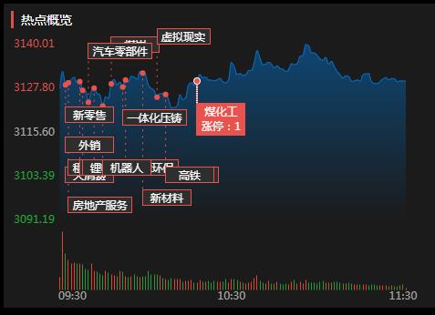 周二(9月20日),三大股指震蕩反彈,全線飄紅。截至上午收盤,上證指數(shù)漲0.46%,報(bào)3129.87點(diǎn);深證成指和創(chuàng)業(yè)板指漲幅分別為0.87%和1.05%;滬深兩市合計(jì)成交額4213億元,總體來看,兩市個(gè)股漲多跌少,近4000只個(gè)股實(shí)現(xiàn)上漲。