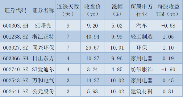 表:連續(xù)上漲3天且今日收盤漲停股一覽