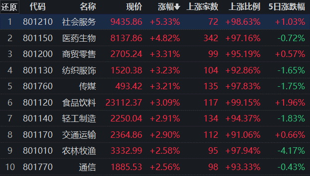 社會服務(wù)行業(yè)領(lǐng)漲