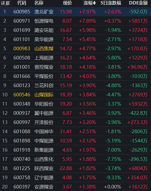 興業(yè)證券表示,動力煤方面,節(jié)前庫存持續(xù)提升,煤礦及鐵路運力優(yōu)先保長協(xié),市場煤資源略緊缺,產(chǎn)地價格持續(xù)上漲。焦煤方面,市場企穩(wěn)向好,雙焦期貨價回升,節(jié)前下游焦企原料煤適量采購補庫,支撐焦煤價格小幅上揚。綜合來看,在供應(yīng)相對平穩(wěn)的背景下,國內(nèi)經(jīng)濟復(fù)蘇仍是中期關(guān)注的需求主線,預(yù)計煤價維持高位震蕩。推薦組合:中國神華、陜西煤業(yè)、電投能源、潞安環(huán)能、晉控煤業(yè)、淮北礦業(yè)、兗礦能源、山西焦煤。