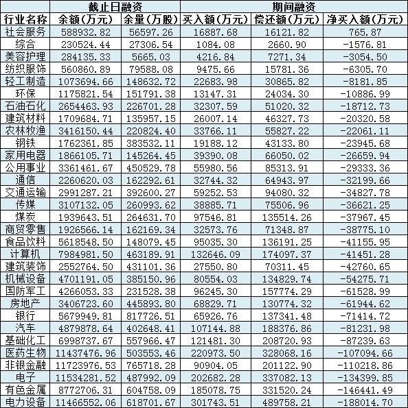 表:9月30日申萬一級行業(yè)兩融交易情況: