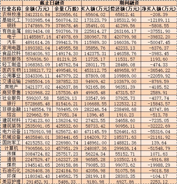 表:10月21日申萬一級行業(yè)兩融交易情況: