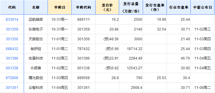 新股方面,根據(jù)發(fā)行安排,A股市場(chǎng)下周將有8只新股申購。