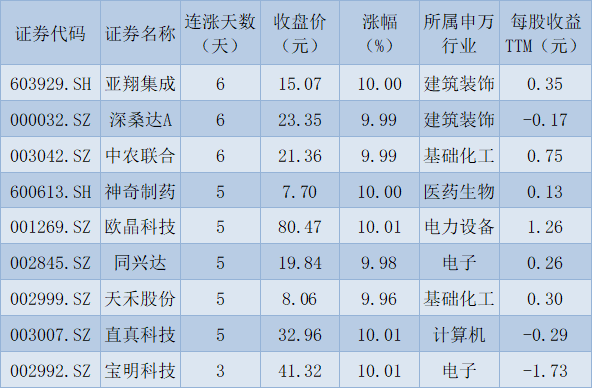 表:連續(xù)上漲3天且今日收盤漲停股一覽