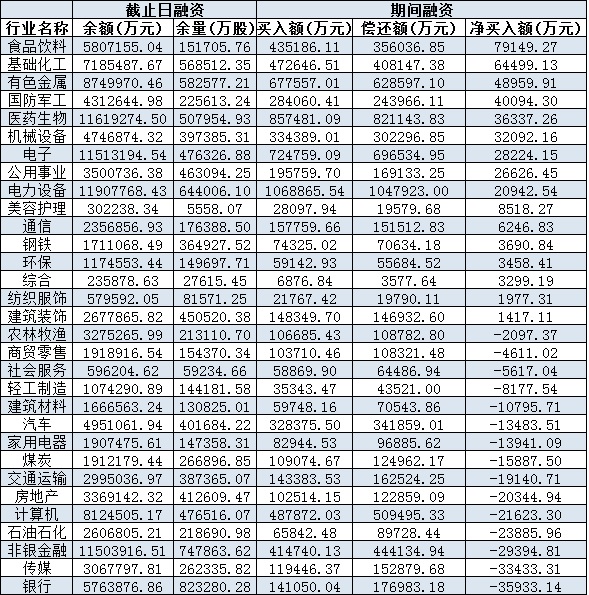 表:11月4日申萬一級(jí)行業(yè)兩融交易情況: