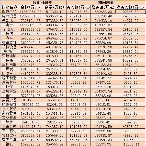 表:11月8日申萬一級行業(yè)兩融交易情況: