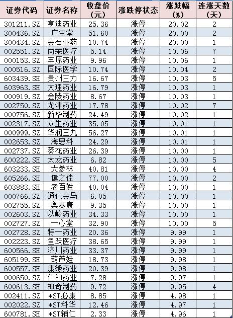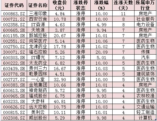 表:連續(xù)上漲4日且今日收盤漲停個(gè)股情況: