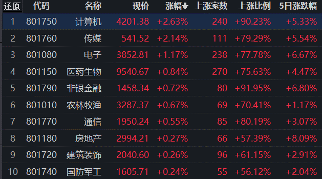 計(jì)算機(jī)行業(yè)領(lǐng)漲