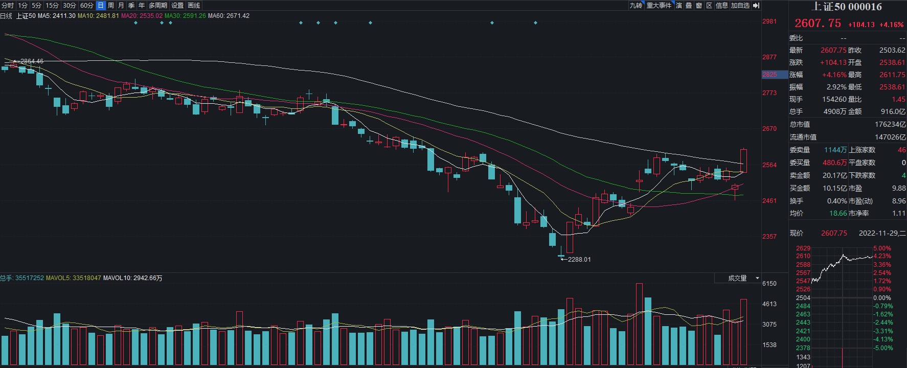 隨著A股市場(chǎng)回暖,市場(chǎng)投資情緒有所恢復(fù),各路資金也紛紛入場(chǎng)布局,上證50指數(shù)也企穩(wěn)反彈,11月1日至29日期間累計(jì)漲13.58%。其中,11月29日,上證50指數(shù)全天高開高走,截至收盤,該指數(shù)漲幅達(dá)4.16%。個(gè)股方面,保利發(fā)展、招商銀行漲幅均超9%,分別達(dá)到9.61%、9.07%,中國(guó)平安、中國(guó)人壽、興業(yè)銀行、山西汾酒、中國(guó)中免、貴州茅臺(tái)、海螺水泥、三一重工等8只個(gè)股漲幅也均逾5%。