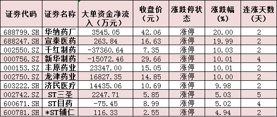 表:醫(yī)藥生物行業(yè)中10只漲停股情況: