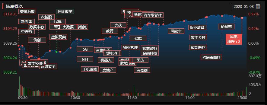 對(duì)于大盤的走勢,排排網(wǎng)財(cái)富研究部副總監(jiān)劉有華告訴記者,今日反彈不改A股震蕩格局,本周市場邁入新的一年,距離春節(jié)長假也僅剩3個(gè)交易周。2023年伊始,機(jī)構(gòu)將開始新的一年布局,部分機(jī)構(gòu)重倉板塊的波動(dòng)可能會(huì)放大。在經(jīng)歷此前超跌反彈后,當(dāng)前指數(shù)上方多條均線匯聚,疊加春節(jié)前部分資金持幣避險(xiǎn)的需求,本周預(yù)計(jì)仍以區(qū)間內(nèi)震蕩為主,市場有可能再次回踩3000點(diǎn)附近確認(rèn)底部,春節(jié)前市場預(yù)計(jì)以低位不斷反復(fù)震蕩構(gòu)造底部為主,為春季行情蓄力。