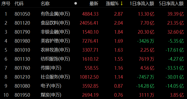從概念板塊來看,基本金屬板塊領(lǐng)漲,漲幅達(dá)2.98%,雞肉概念、黃金概念、汽車一體化壓鑄、托育服務(wù)、職業(yè)教育等板塊表現(xiàn)強(qiáng)勢漲幅均超2%;6G概念領(lǐng)跌,跌幅達(dá)1.28%。