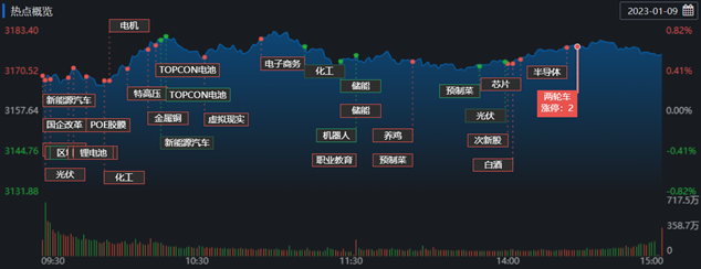 1月9日,A股三大指數(shù)高開震蕩,滬指連續(xù)6個(gè)交易日上漲,5日均線已上穿有牛熊分水嶺之稱的120日均線,技術(shù)面更趨強(qiáng)勢。截至收盤,上證指數(shù)漲0.58%報(bào)3176.08點(diǎn);深證成指漲0.73%報(bào)11450.15點(diǎn),創(chuàng)業(yè)板指漲0.75%報(bào)2440.374點(diǎn),A股合計(jì)成交額8071.65億元,較前一交易日縮減3.69%,北向資金凈買入77.00億元??傮w上看,A股個(gè)股漲少跌多,有2969只上漲,1786只下跌。