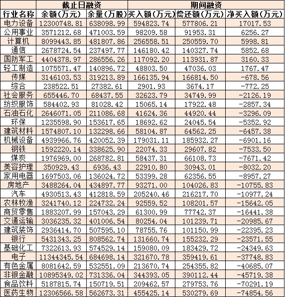表:1月13日申萬一級行業(yè)兩融交易情況: