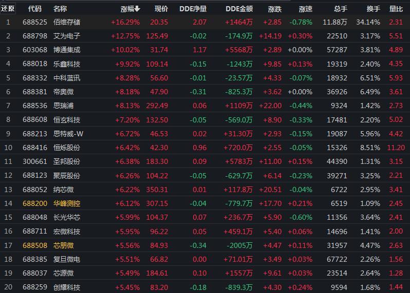 具體看,截至1月17日上午收盤,半導(dǎo)體及元件板塊表現(xiàn)搶眼,漲幅達(dá)2.4%。其中,恒維存儲、艾為電子、博通集成等概念股漲幅均超10%。
