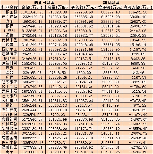 表:1月16日申萬一級行業(yè)兩融交易情況: