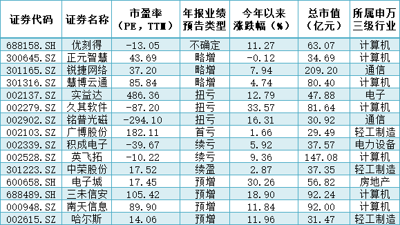 表:數(shù)字經(jīng)濟板塊已公布去年年報業(yè)績預(yù)告?zhèn)€股一覽(截至1月17日)