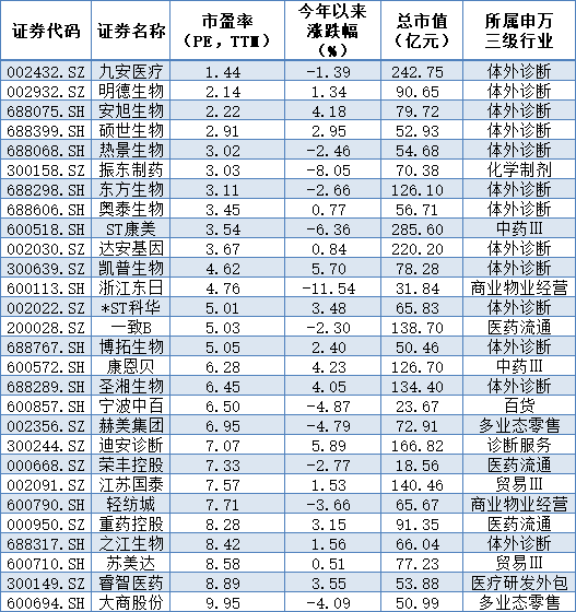表:消費賽道中市盈率小于10倍個股一覽(截至1月17日)