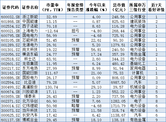 表:新能源領(lǐng)域近7天被機構(gòu)給予看好評級個股一覽(截至1月17日)