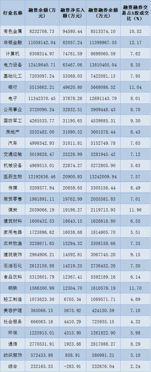 表:2月1日申萬(wàn)一級(jí)行業(yè)兩融交易情況: