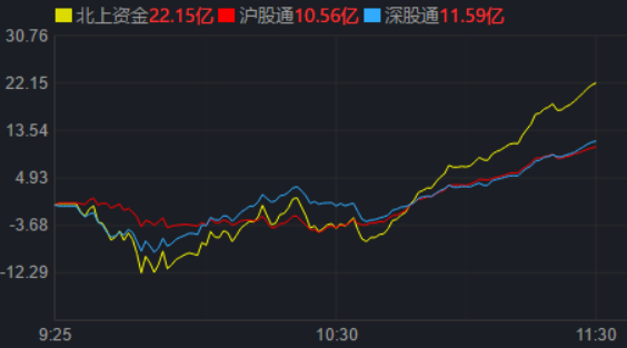 從資金面來(lái)看,2月2日上午,北上資金凈買(mǎi)入金額達(dá)22.15億元,其中,滬股通凈買(mǎi)入10.56億元,深股通凈買(mǎi)入11.59億元。