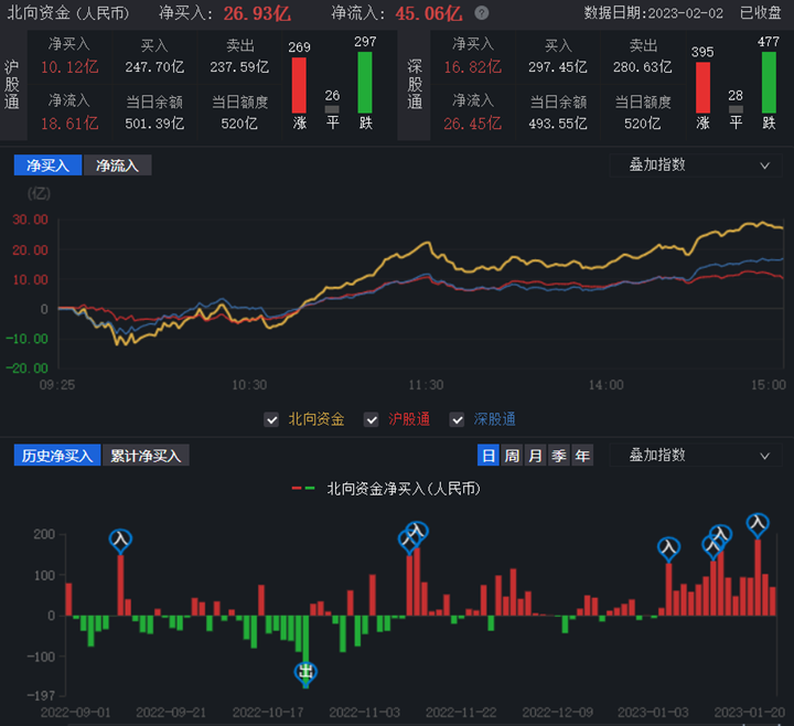 2月2日,A股震蕩分化,成交額連續(xù)第二個(gè)交易日站上1萬億元,北上資金繼續(xù)凈買入,商貿(mào)零售與煤炭等申萬行業(yè)強(qiáng)勢。業(yè)內(nèi)人士表示,中國經(jīng)濟(jì)有望迎來快速企穩(wěn)反彈局面,今年A股市場表現(xiàn)值得期待。