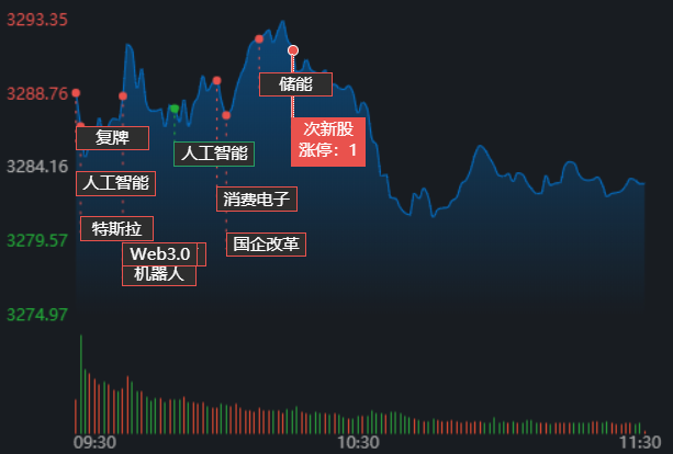 2月14日,A股早盤三大指數(shù)高開后震蕩回落,滬市略強(qiáng)。截至上午11:30,上證指數(shù)跌0.03%,報3283.21點;深證成指和創(chuàng)業(yè)板指跌幅分別為0.45%和0.68%;滬深兩市成交額合計5749.5億元,較前一交易日下降了5.14%??傮w來看,A股市場個股漲少跌多,漲跌停方面,有23只個股漲停,跌停股5只。