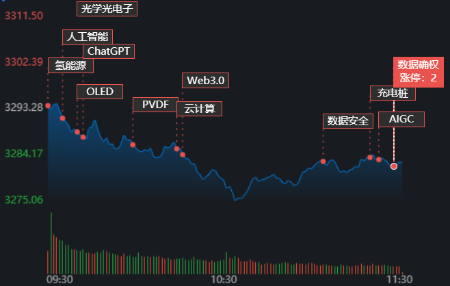 2月15日,早盤滬指開盤后出現(xiàn)回落,之后震蕩回升,A股三大指數(shù)早盤收陰。截至上午11:30,上證指數(shù)跌0.32%,報3282.61點;深證成指和創(chuàng)業(yè)板指跌幅分別為0.18%和0.50%;滬深兩市成交額合計5583.9億元??傮w來看,A股市場個股漲少跌多,漲跌停方面,有32只個股漲停,跌停股1只。