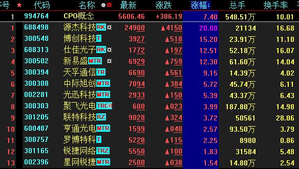 熱點方面,截至4月6日上午收盤,CPO概念、AI芯片等板塊漲幅居前。另外,快手概念、廣電系等板塊跌幅居前。具體來看,CPO概念板塊漲幅居首達7.40%。其中,源杰科技20CM漲停,股價再創(chuàng)上市以來新高。