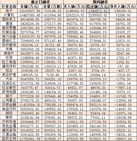 表:4月4日申萬一級行業(yè)兩融交易情況: