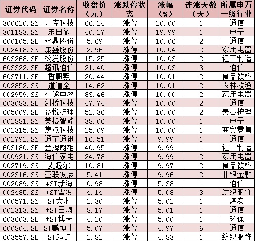 表:今日收盤漲停個股情況: