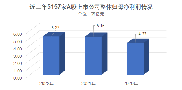 圖1:近三年5157家A股上市公司整體歸母凈利潤對比圖