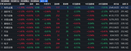 表:今日有色金屬行業(yè)內(nèi)漲幅前十個股一覽