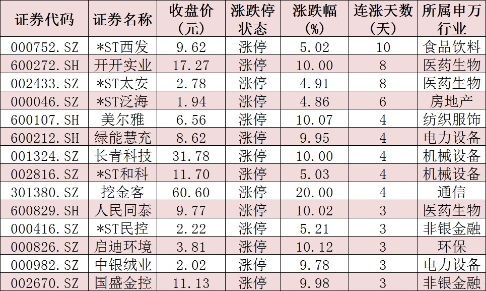 表:連續(xù)上漲3日且今日收盤漲停個股情況: