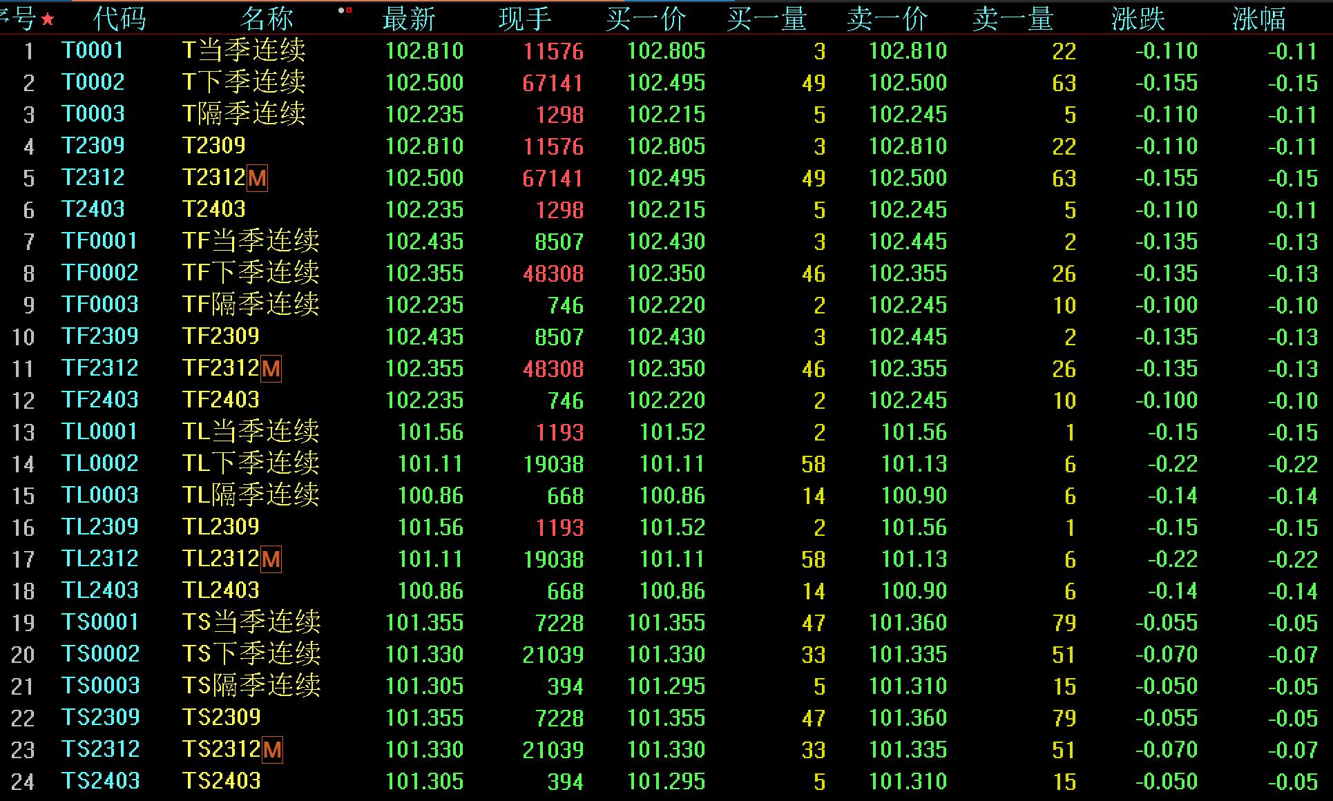 周五,銀行間主要利率債收益率普遍上行,中短券表現(xiàn)更弱。國債期貨全線收跌,10年期國債期貨主力合約收跌0.15%。截至收盤,30年期國債期貨報收101.110元,下跌0.220元,跌幅0.22%;10年期國債期貨報收102.500元,下跌0.155元,跌幅0.15%;5年期國債期貨報收102.355元,下跌0.135元,跌幅0.13%;2年期國債期貨報收101.330元,下跌0.070元,跌幅0.07%。