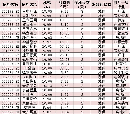 表:連續(xù)上漲2日且今日收盤(pán)漲停個(gè)股情況:
