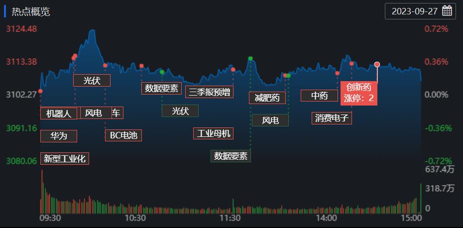 具體來看,醫(yī)藥、新能源賽道表現(xiàn)強(qiáng)勢(shì),其中,CRO(合同研究組織)概念板塊領(lǐng)漲,德展健康漲停;減肥藥概念股持續(xù)走強(qiáng),常山藥業(yè)等3只概念股漲停;創(chuàng)新藥板塊集體走強(qiáng),賽隆藥業(yè)等5只概念股漲停;BC(全背電極接觸晶硅光伏電池)電池概念股全天強(qiáng)勢(shì),鈞達(dá)股份、愛旭股份漲停;機(jī)器人、新型工業(yè)化概念股維持強(qiáng)勢(shì),德恩精工20CM漲停實(shí)現(xiàn)3連板,精倫電子6連板;醫(yī)療服務(wù)、高壓氧艙、互聯(lián)網(wǎng)電商、流感、中藥、HJT電池、醫(yī)美概念等板塊表現(xiàn)活躍。