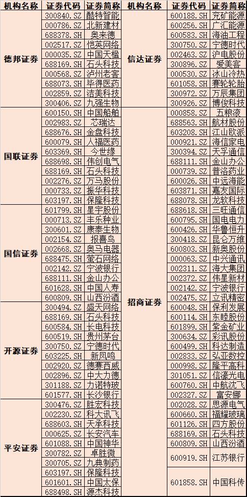 對(duì)于即將到來的10月份行情,機(jī)構(gòu)如何布局呢?Wind數(shù)據(jù)顯示,截至9月27日發(fā)稿,國聯(lián)證券、國信證券、開源證券、平安證券、信達(dá)證券、招商證券、德邦證券等7家券商公布了10月份金股組合和策略,共有89只個(gè)股被推薦(不包括港股),石頭科技、寧波銀行、保隆科技、寧德時(shí)代、金山辦公、山西汾酒等個(gè)股獲券商集體看多。多數(shù)券商看好科技、消費(fèi)、新能源等領(lǐng)域10月份的投資機(jī)會(huì)。