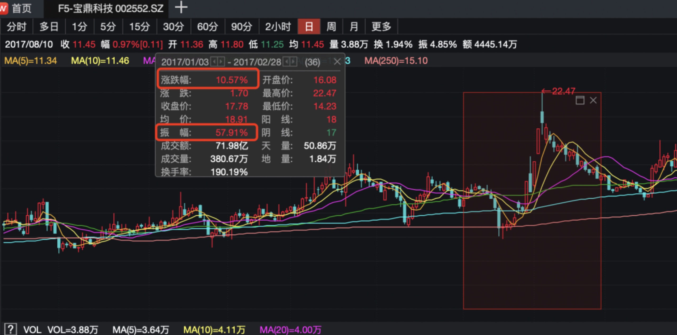 圖為2017年1月份至2月份,吳承澤團(tuán)伙連續(xù)交易“寶鼎科技”時(shí)該股走勢