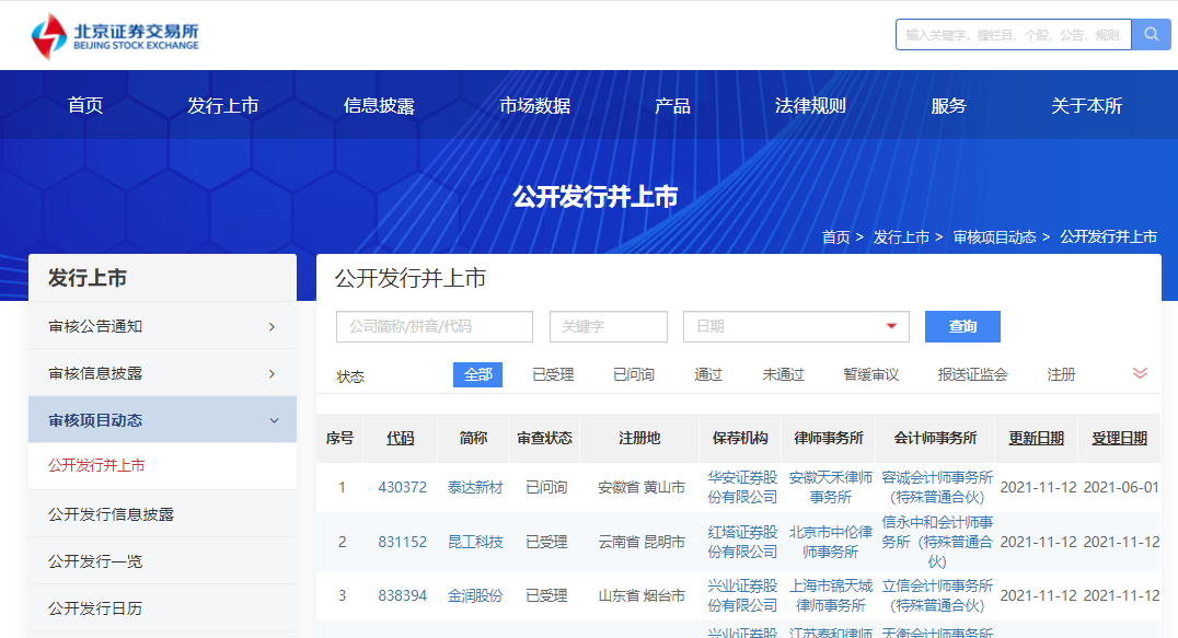 11月15日,北京證券交易所將開市。記者注意到,11月14日,北交所審核系統(tǒng)正式上線,原新三板精選層184單審核項目已經(jīng)全部平移至北交所(含41單終止項目)。目前,新三板精選層審核系統(tǒng)已經(jīng)“下線”。
