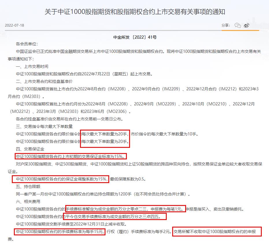 7月18日,證監(jiān)會網(wǎng)站消息顯示,證監(jiān)會近日批準中國金融期貨交易所開展中證1000股指期貨和期權(quán)交易。相關(guān)合約正式掛牌交易時間為2022年7月22日。當日,中金所發(fā)布關(guān)于中證1000股指期貨和股指期權(quán)合約及相關(guān)業(yè)務(wù)規(guī)則的通知等系列規(guī)則。
